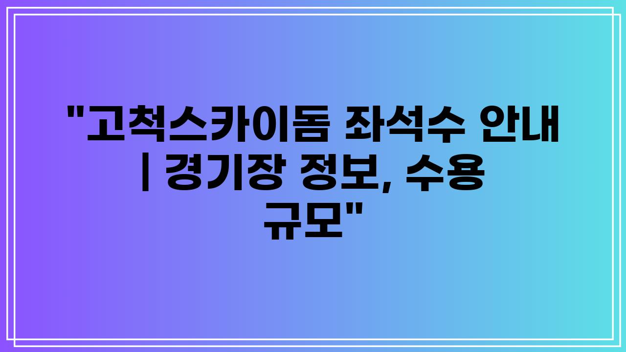 고척스카이돔에서 즐거운 스포츠 경기나 콘서트를 경험하려면 좌석수를 아는 것이 중요합니다. 좌석수가 얼마인지 파악하면 경기장의 규모와 각 좌석 카테고리의 가용성을 확인할 수 있습니다. 이 블로그 게시물에서는 고척스카이돔의 좌석수, 경기장 정보, 수용 규모에 대해 공지해 알려드리겠습니다.